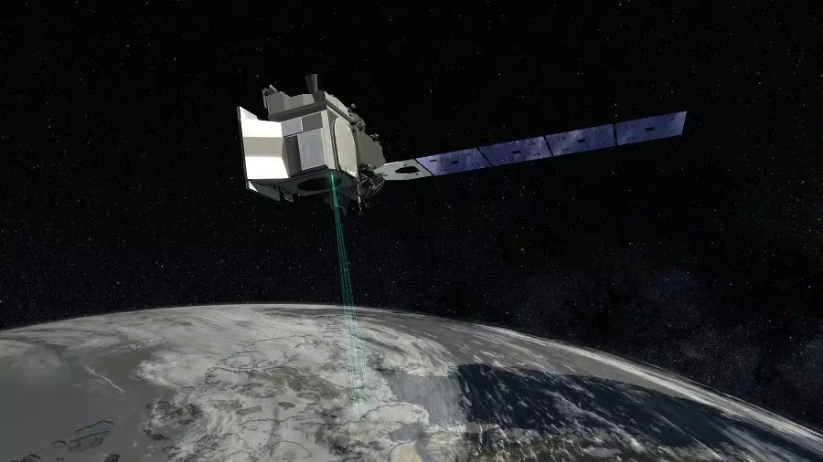 卫星携带一台名叫“阿特拉斯(ATLAS,Advanced Topographic Laser Altimeter System)”的激光测高仪,包括主激光器和备用激光器。阿特拉斯可以发射六束亮绿色激光,高能激光束穿透细碎的云层和雾气到达地面。当激光被地面物体反射时,卫星上的探测器就能捕获信号,从而识别出反射物体。通过这种方式,卫星的探测精度可以达到惊人的70厘米——能够在太空中分辨出街道上跑着的孩童。