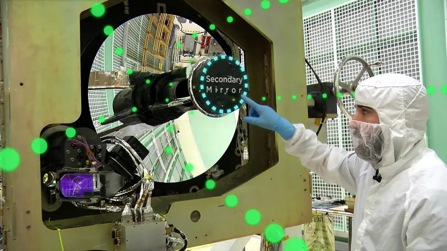图5 工程师Tyler Evans与望远镜(图片来源:NASA)