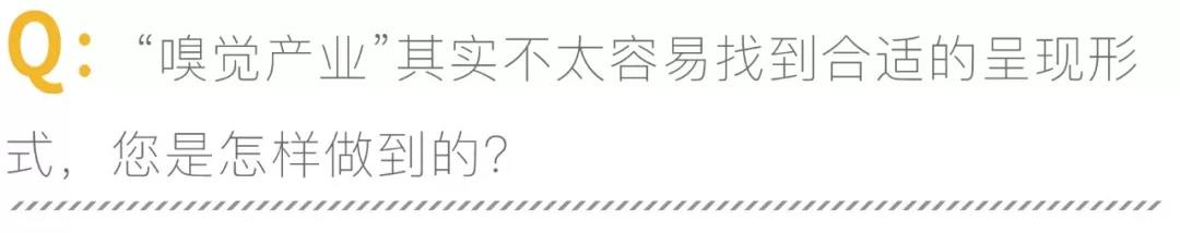 A:嗅觉产业,这是个非常虚的概念,怎么落地?怎样呈现?总不能卖空气吧?在翻阅文献后发现,想要把味道调配出来,顶级资源都聚集在国外,以当时的条件达不到,我们就打算先从代理做起。调研了大大小小40个牌子后,给他们一一发了申请代理的邮件,最后只收到了Demeter的回复,迈出代理的第一步。