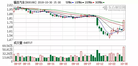 10月30日下午福田汽车的股价神奇涨停。