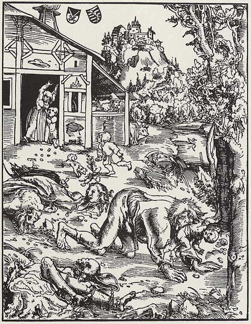 柏拉图笔下关于狼人最有意思的论述,莫过于吕卡翁(又被被称作“传说中的王”)从“保护者变为暴君”的故事了。在古罗马的拉丁文本中,狼人的故事得以进一步延伸。最受瞩目的就是希吉努斯(Hyginus)的《传说集》和罗马诗人奥维德(Ovid)的《变形记》了。这时候,吕卡翁的故事已经囊括了我们现代狼人所需的一切元素:品行不端、谋杀和食人。