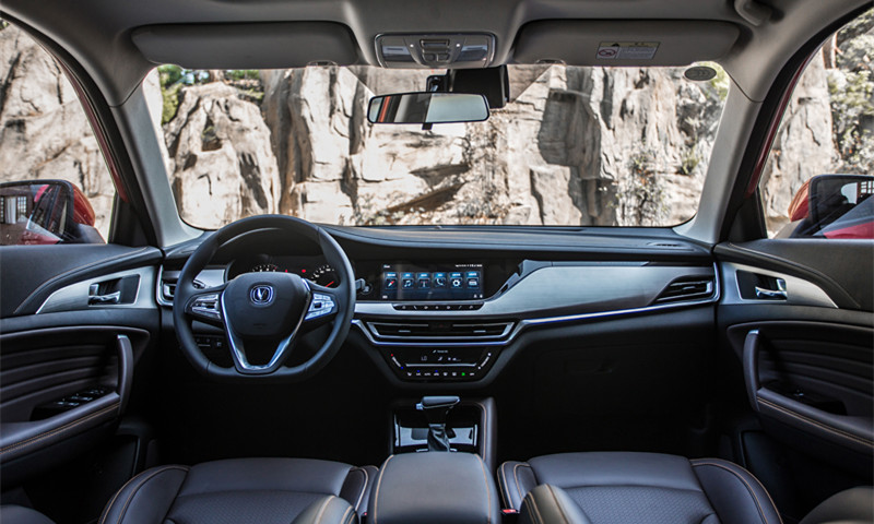 内饰以简洁明了中控采用环抱式智能中控设计,搭配金属拉丝装饰面板,设计感不错,而且加上车内仪表屏、副驾小屏、功能键触摸屏的全触屏控制,提升整车科技感。座椅配备了这个级别比较少见的“Nappa”皮纹座椅,大面积软质包裹覆盖工艺,搭配细致缝线营造出不错的质感。而且CS35 PLUS车型在高配车型上还配置了空气净化系统和长安自主研发NVH降噪功能。