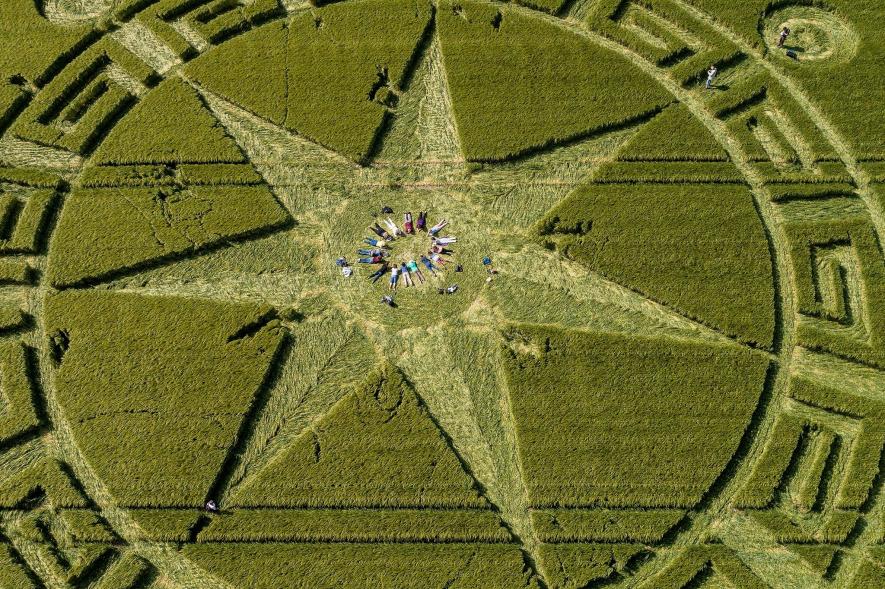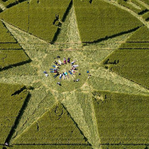 对蒂尼·海尼这样的艺术家来说,他们有着自己的答案:所有的麦田怪圈都出自艺术家之手,用绳子、木板和测量尺绘制而成。“更复杂的图案可能需要激光打点,先画好线条,再用木板压平农作物。用这种方法就能创造出无数怪圈,”海尼说。