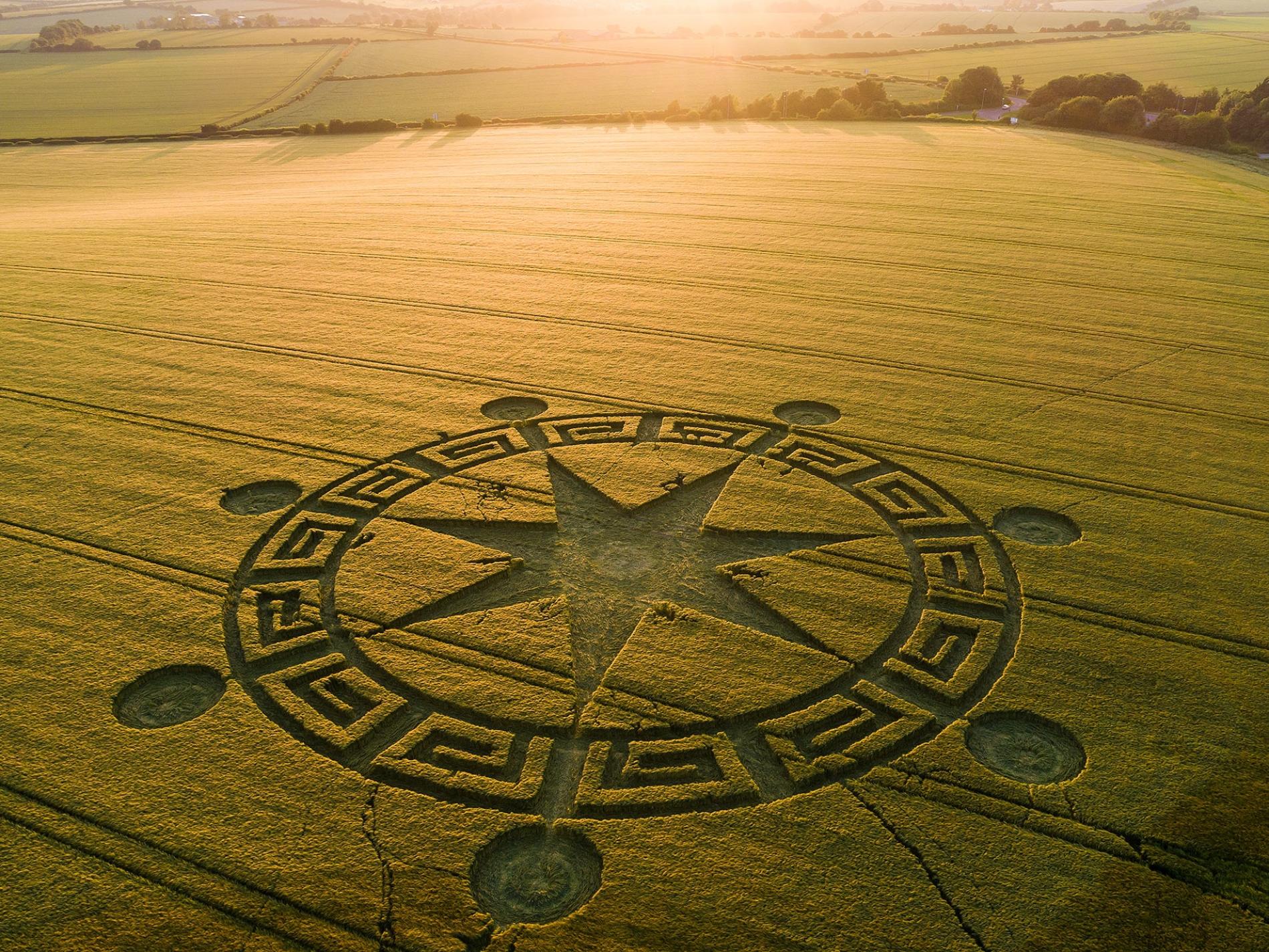 无论成因如何,麦田怪圈的基本构成都是谷物被压平为一定的形状。圆形麦田怪圈的出现可以追溯到几百年前的欧洲,威尔特郡的麦田怪圈“朝圣”则始于20世纪70年代,一直延续至今。