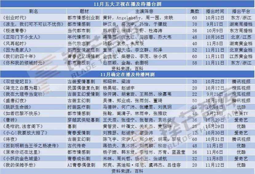 这个11月,台网之间想来又是一场恶战。