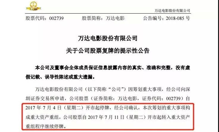 在昨日发布的公告中,万达电影依照今年6月发布的重组计划,对深交所提出的问询进行了答复。不过毒眸注意到,虽然公告中提及的重组计划和6月的方案基本类似,但也有几处值得关注的调整: