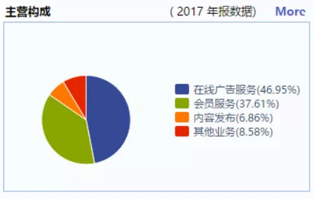 对于爱奇艺来说,那时的在线广告业务也依然大有看点。2015-2017年,爱奇艺在线广告业务收入分别为33.999亿元、56.504亿元和81.589亿元,相应的2016年与2017年增长率为66.2%和44.4%。