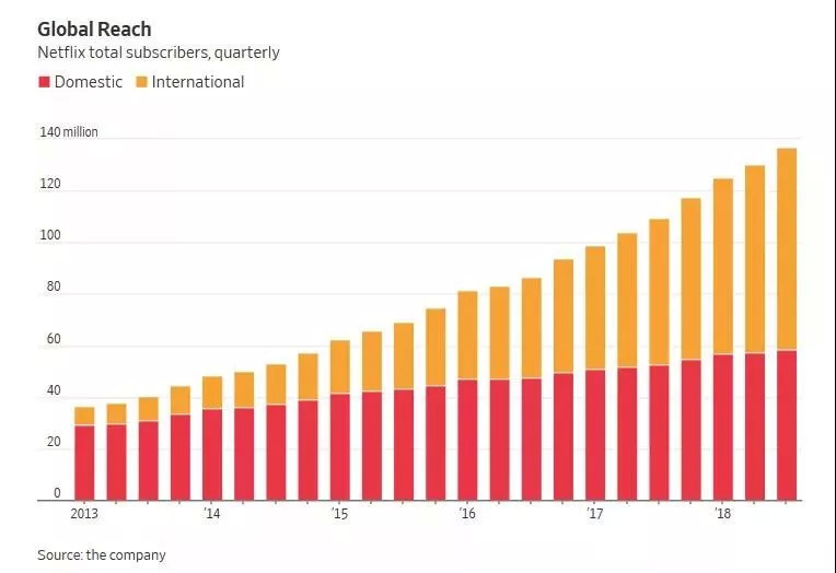 2018年前三季度,奈飞Q1、Q2、Q3的总收入分别为:37.01亿美元、39.07亿美元和40亿美元,超过116亿美元,约合800亿人民币,而爱奇艺三个季度的总收入分别为49亿元人民币(约7.776亿美元),62亿元人民币(约合9.325 亿美元)和69亿元人民币(约合10亿美元),总计只有180亿人民币,还不到达奈飞的14。