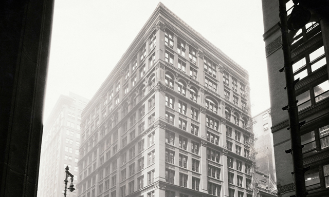 出于明显的原因,当纽约家庭保险公司想要在芝加哥市中心空出的地方新建一座总部时,他们希望大楼能够防火,且足够高,“在银行地板上要有最大数量的小办公室”。詹尼的金属结构设计赢得了他们的公开竞争,这不仅得益于相对更好的耐火性和材料,还得益于覆盖着石头的外部铁柱所提供的额外保护。