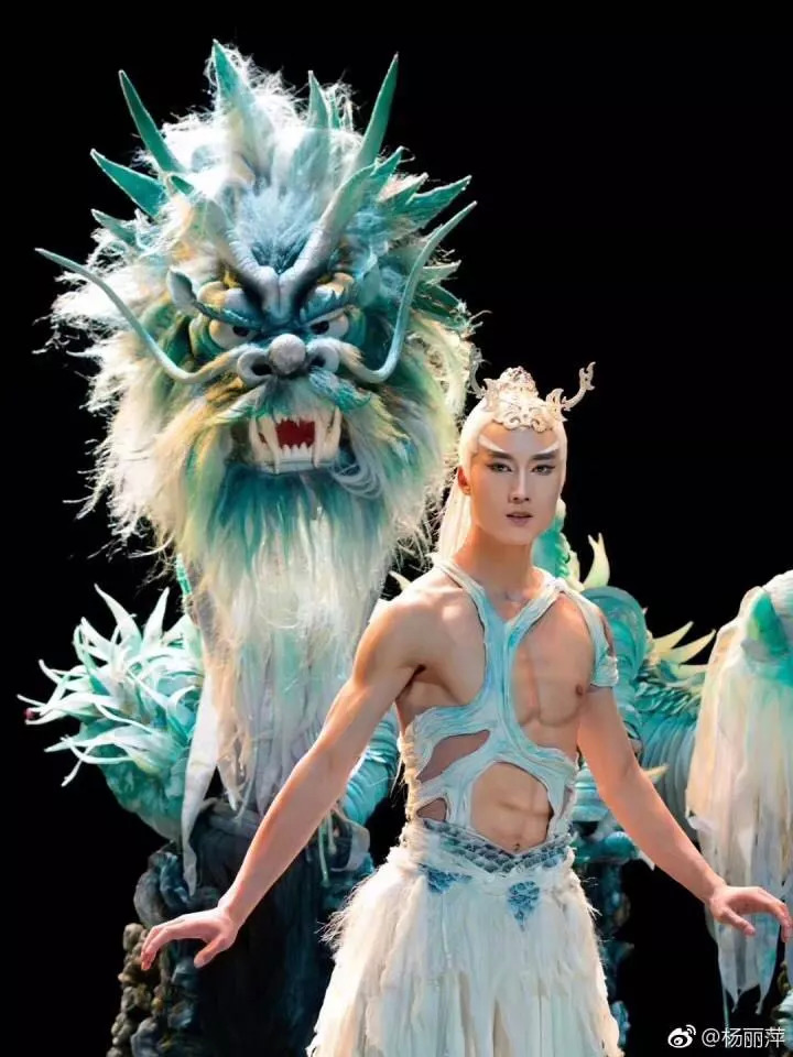 作为祭祀神的扮演者朱凤伟,他也是杨丽萍非常看重的可塑性非常高的舞者。他在《十面埋伏》里饰演刘邦,《平潭印象》中饰演白龙王子。此次《春之祭》中扮演人神共住一肉身中的祭祀之神。