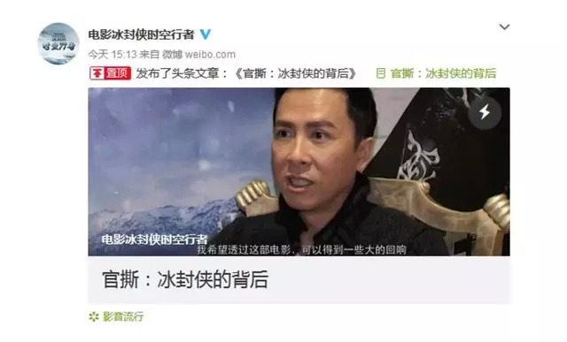 11月3日下午,《冰封侠》出品方中盟世纪在“电影冰封侠时空行者”微博上发出一篇文章《官撕:冰封侠的背后》,对影片的主演甄子丹发难,称其没有契约精神和职业道德,在网上引起热议。