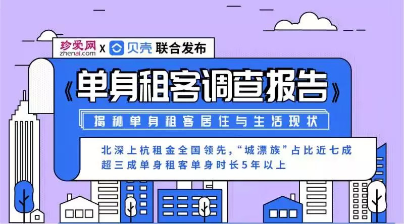 近年来,越来越多的年轻人涌入大城市工作生活,他们看到了不一样的风景,有了全然不同的生活体验,可是,一些人也经历着“落单”的辛酸。据媒体统计,我国有近2亿的单身人口,而城市单身租客群也在日渐庞大。这些“单身贵族”的租房生活是想象中的自由自在,还是也有一点点落寞呢?近日,贝壳找房联合珍爱网对多个城市的单身租客进行了调研并发布《单身租客调查报告》,在调研中我们发现了一些有趣的现象: