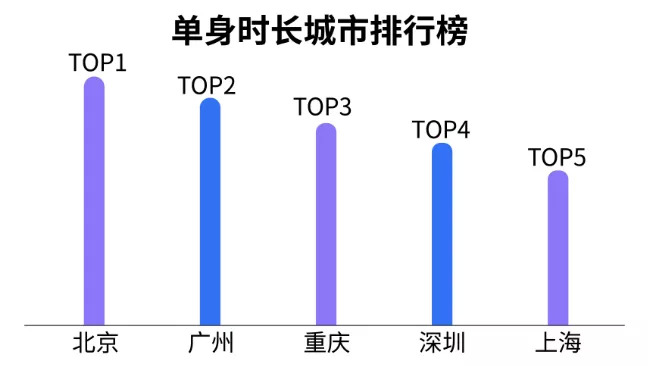 而从地域上看,北京单身租客中,单身5年以上的租客占比最高,领衔单身时长排行榜。其次分别为广州、重庆、深圳、上海。