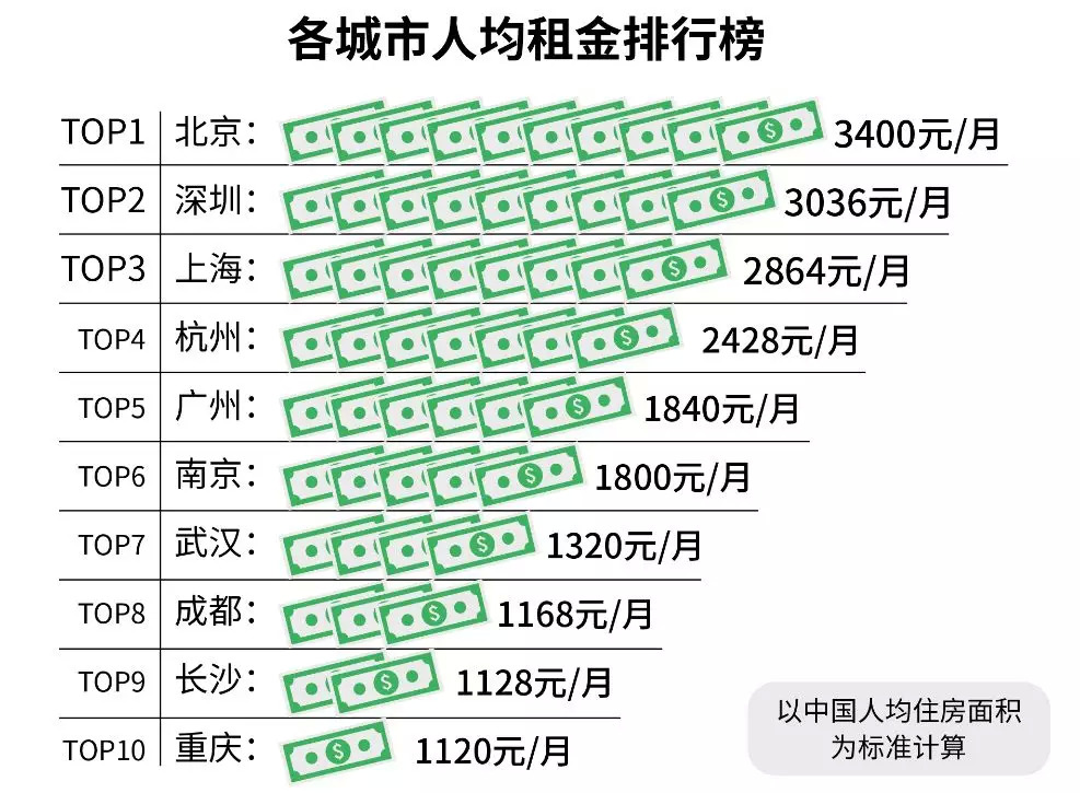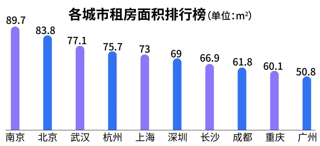 1、北京、深圳、上海、杭州租金在全国领先,南京单身租客住房面积第一;
