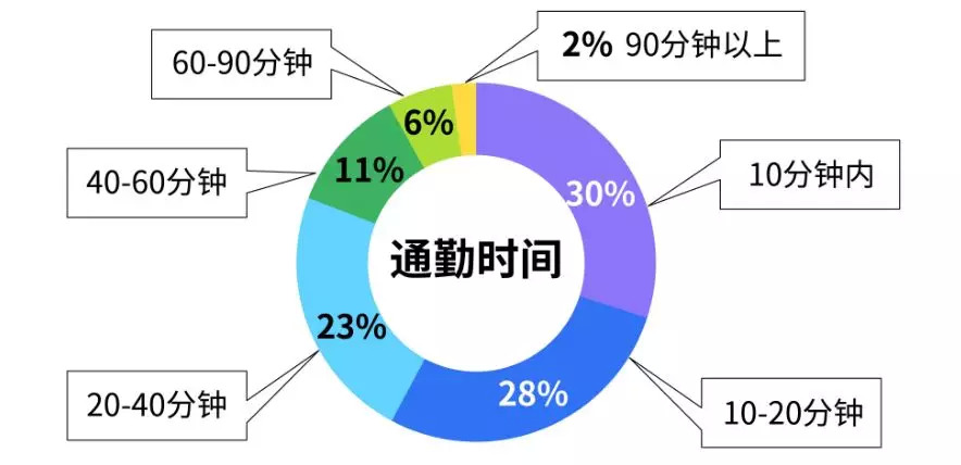 调查显示,81%的租客选择租住在通勤时间为40分钟之内的范围内。其中,有58%的人,其办公地点与居住地通勤时间不到20分钟,通勤时间仅10分钟的占30%。可见,单身租客的观念里,租房就要距离办公区近一些,他们对通勤时间具有较高的要求。