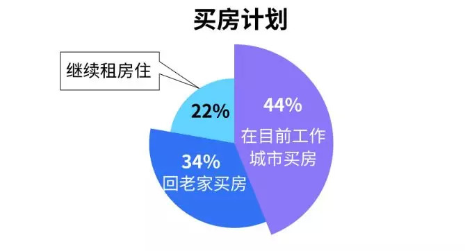 尽管城市的高房价让不少人望而却步,但仍有44%的租客表示计划在目前工作城市买房,而另有34%的租客计划回老家买房,22%的租客则选择继续租房住,认为租房更经济方便。
