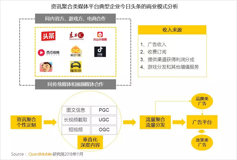 1.1 资讯聚合类媒体向广告平台发展,内部孵化垂直类渠道,覆盖更多元用户,吸引流量