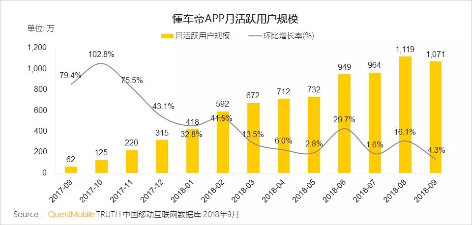 垂直资讯类APP懂车帝为今日头条孵化的垂直内容品类,延续了今日头条的社交及短视频功能,半年内用户规模突破千万。