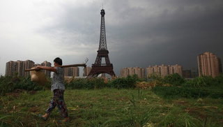 这是一个经济飞速发展的国家,但其郊区还是矗立着欧洲城市标志性建筑的复制品,比如杭州郊区的埃菲尔铁塔、上海的“泰晤士小镇”、石家庄的狮身人面像(少个鼻子)以及深圳的山寨白宫建筑。人们在这些建筑里生活和工作,并且深感自豪。