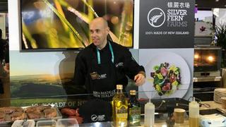走进进博会的食品及农产品馆,一阵阵肉香迎面飘来。顺着香味追寻过去,原来是来自新西兰的参展商银蕨农场在表演烹饪秀。来自新西兰的屠宰“行家”熟练地展示着精湛的肉类分割技艺,配合新西兰厨师对牛肉、羊肉和鹿肉的精心烹饪,给驻足的参观者带来一顿美味佳肴。