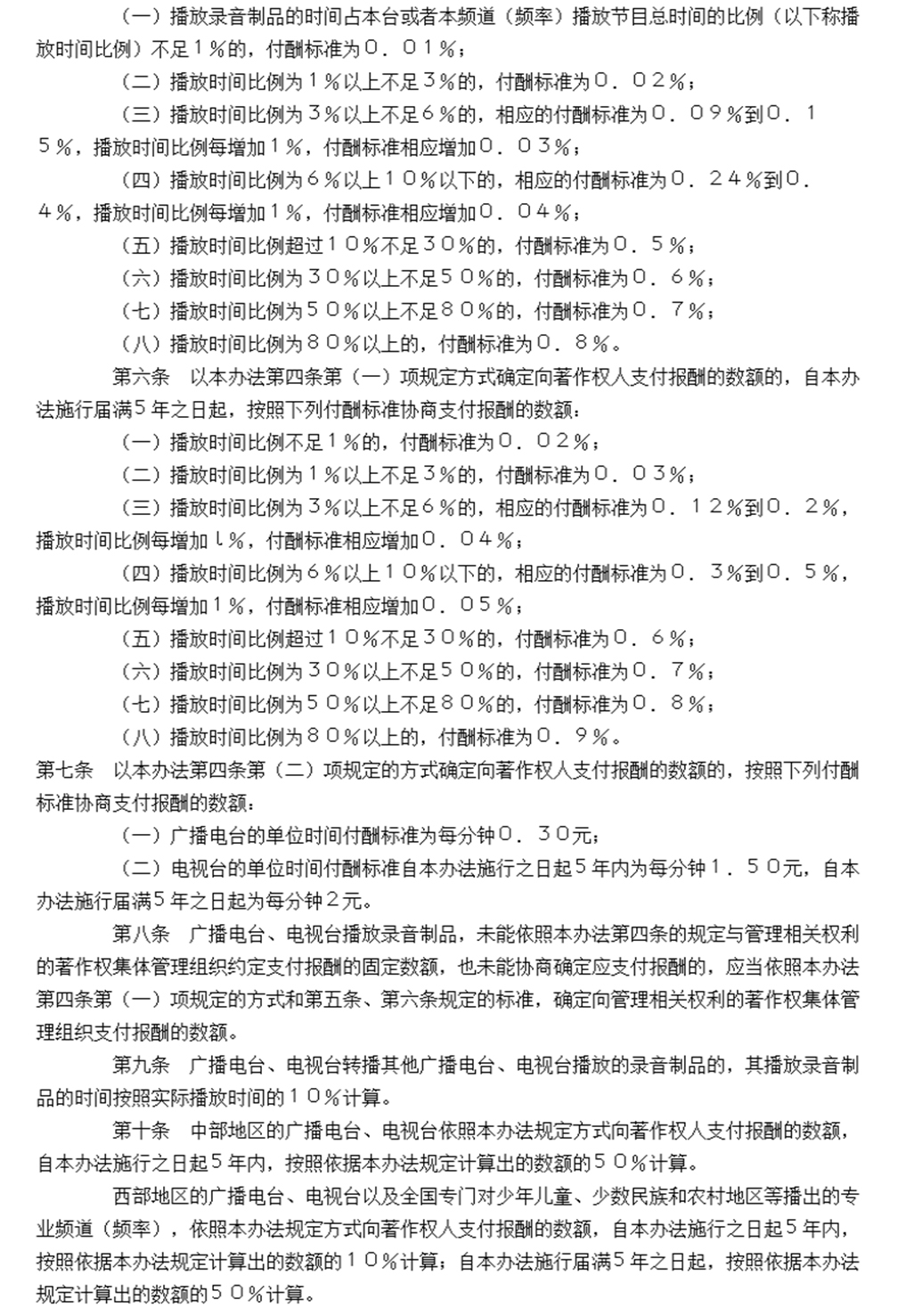 早在2009年,中国国家版权局已经出台《广播电台电视台播放录音制品支付报酬暂行办法》,当时广播电台、电视台普遍收入较差,且大部分的广播电台、电视台的版权意识较差,这也造成了当时的费率比较低。