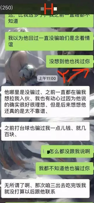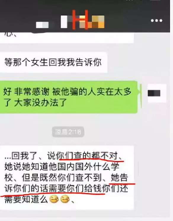 在发小又推荐了一个朋友H给我们后,H又表示,自己的一个前女友可能会知道骗子的更多信息,H可以帮忙问问。结果没多久H表示,他的前女友说,她也被骗子骗过,并且知道骗子非常多的个人信息。但如果我们想通过她得到,就必须给钱。
