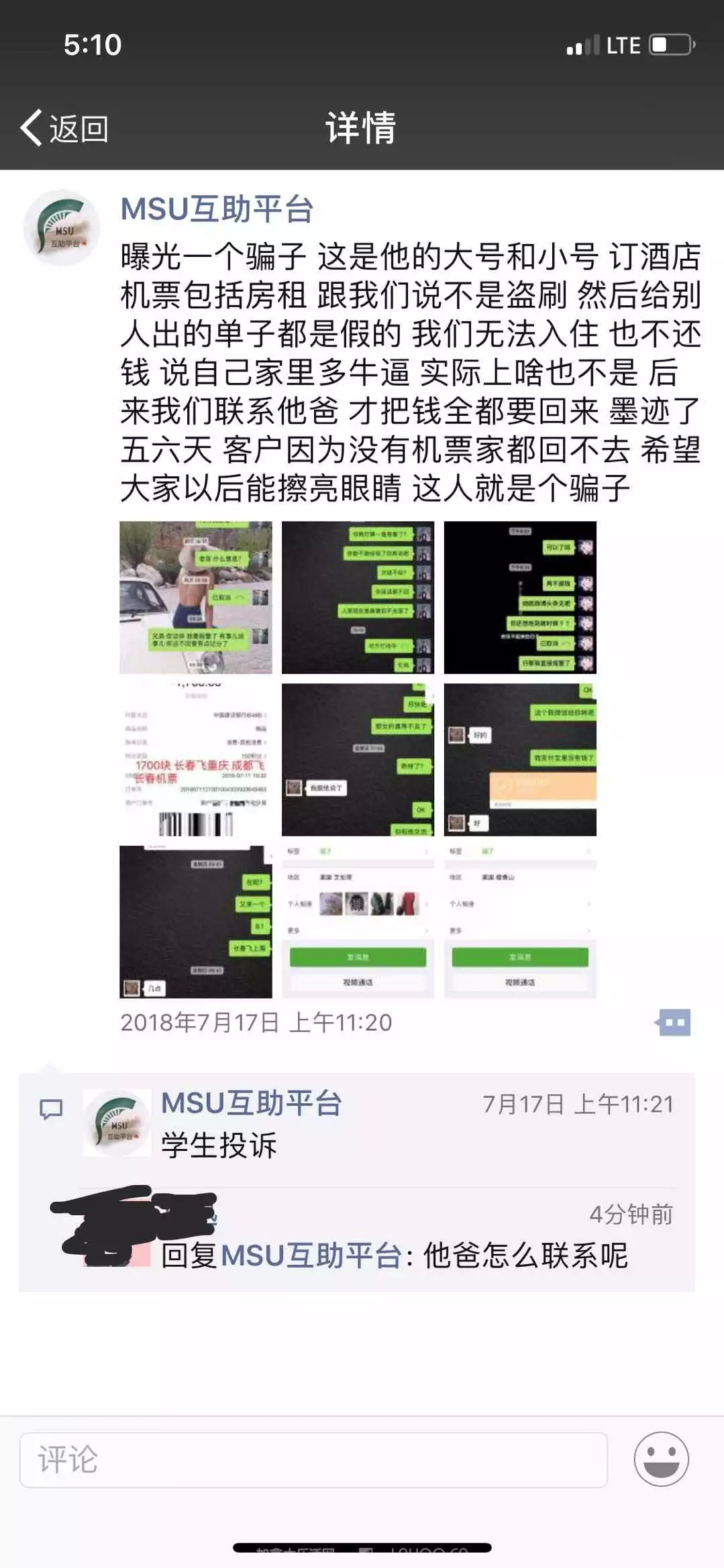 我们很多人都尝试加他的微信,但他一直没有通过好友验证,找他聊天也不回。但后来我们联系上了这个骗子的一个发小,发小一发消息,骗子就回了。