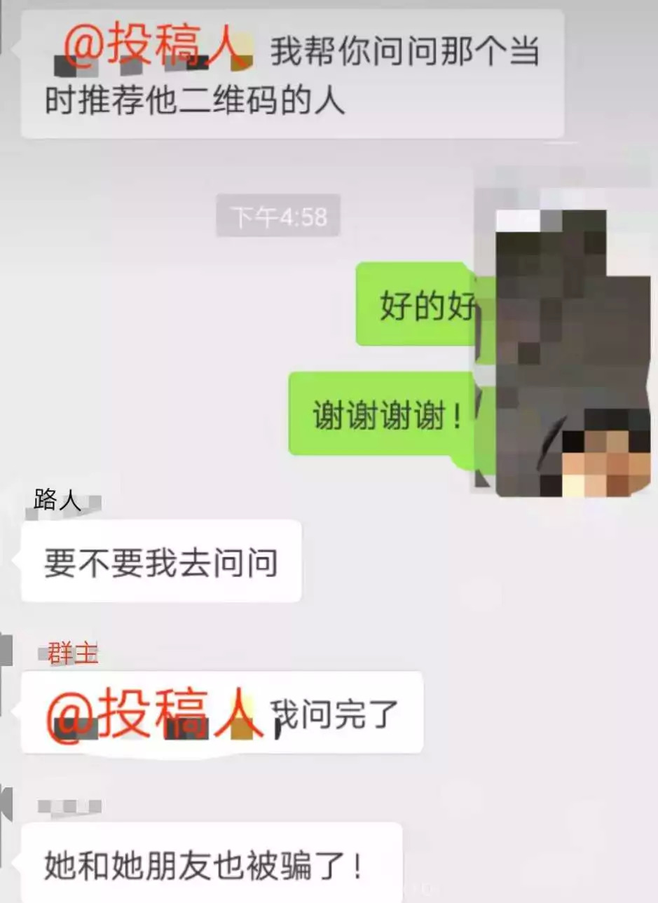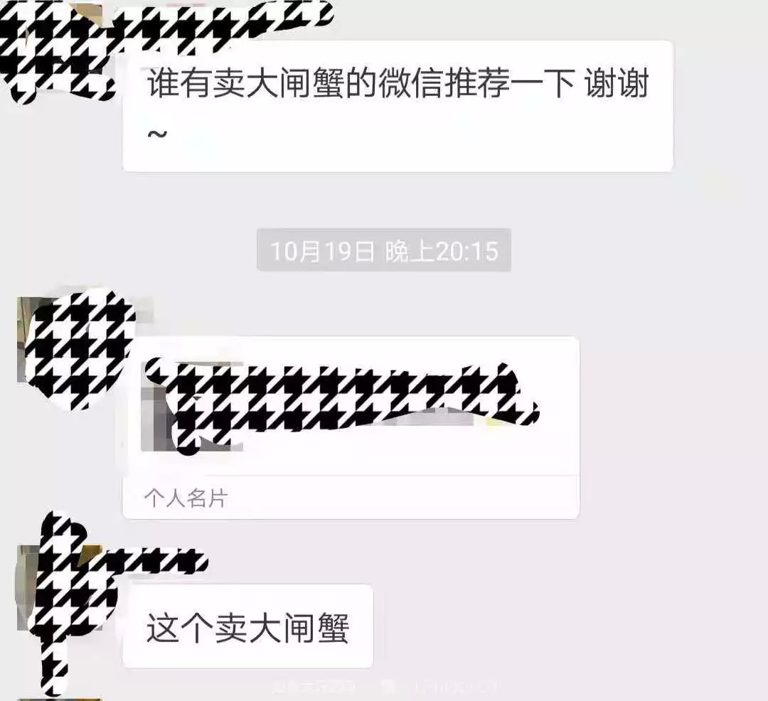 于是我去很多群打听了这个骗子。有人告诉我说,这个人她的朋友之前有在朋友圈推过,是卖大闸蟹的,她去帮我们问一下。结果发现,都是被骗的受害者......