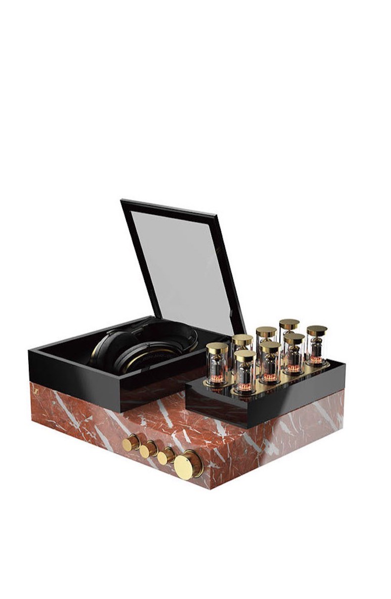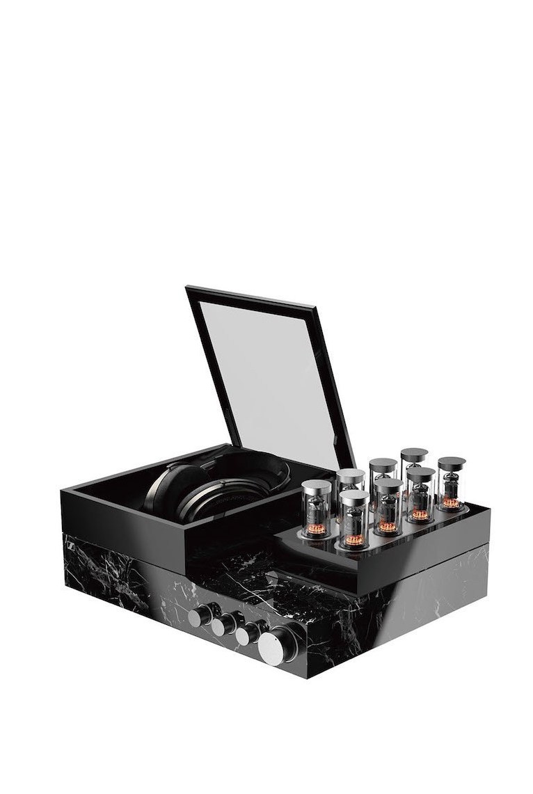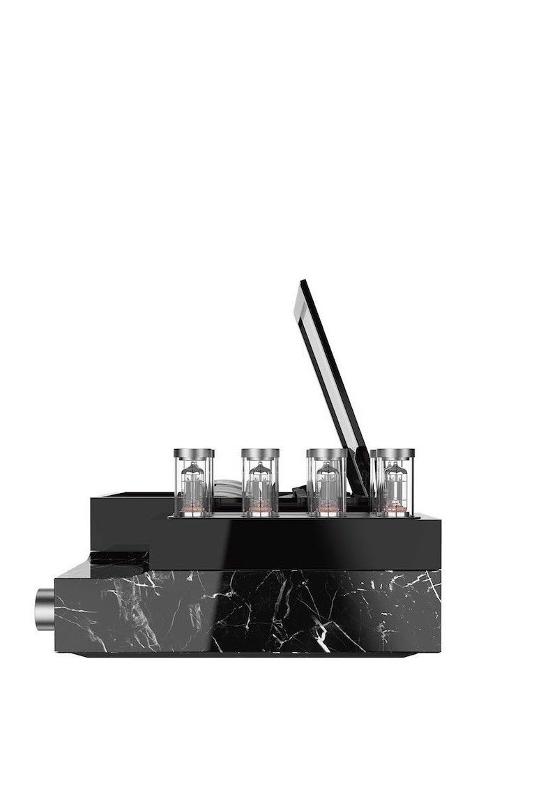 新款的HE 1限量系列有红、黑两种配色,并用极为珍贵的材料制作而成。红色版本的基座由大理石制作而成,石料来源于多年前已关闭德国矿山Deutsch Rot,;黑色版本则在控制旋钮以及真空管上追求制作的极致,将稀有的铑元素镀于其上,呈现出银白皎洁的光泽。