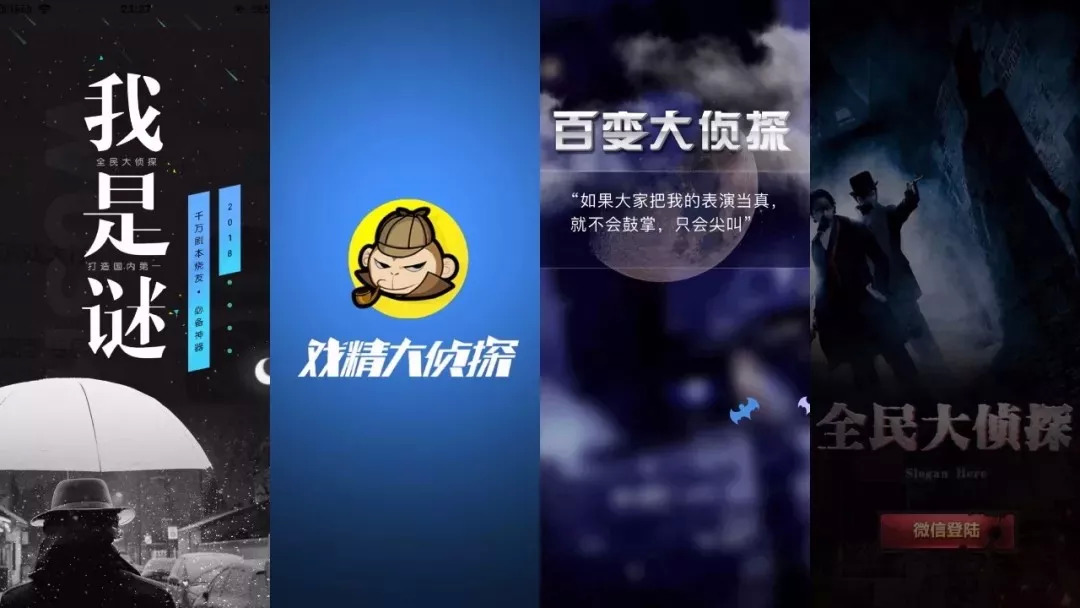 随着《明星大侦探》的播出,“剧本杀”被推进了观众视野,很多团队也开始抓住机遇,将谋杀之谜游戏从线下搬到线上。从最初的微信公众号组队游戏,到现在已经出现了《戏精大侦探》《我是谜》《百变大侦探》《全民大侦探》等独立APP。
