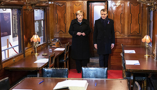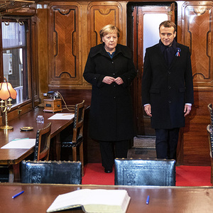 11月10日,在第一次大战结束一百周年之际,马克龙、默克尔聚首停战协议签署地康边(Compiègne),共同出席了为纪念牌匾揭幕的仪式。这也是自1940年以来,法德两国首脑首次共同在停战地点出席活动。