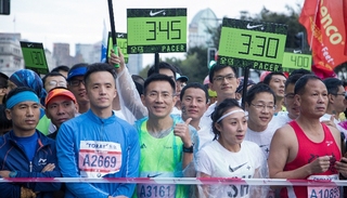 近年,上马变得越来越热闹。1996年首届赛事,参赛人数是5000人,2017年则达到3.8万人,预报名人数超12万,中签率仅约30%。1996年,境外参赛人员不到10位,2017年达到6250位,来自85个国家和地区,国际化趋势明显。