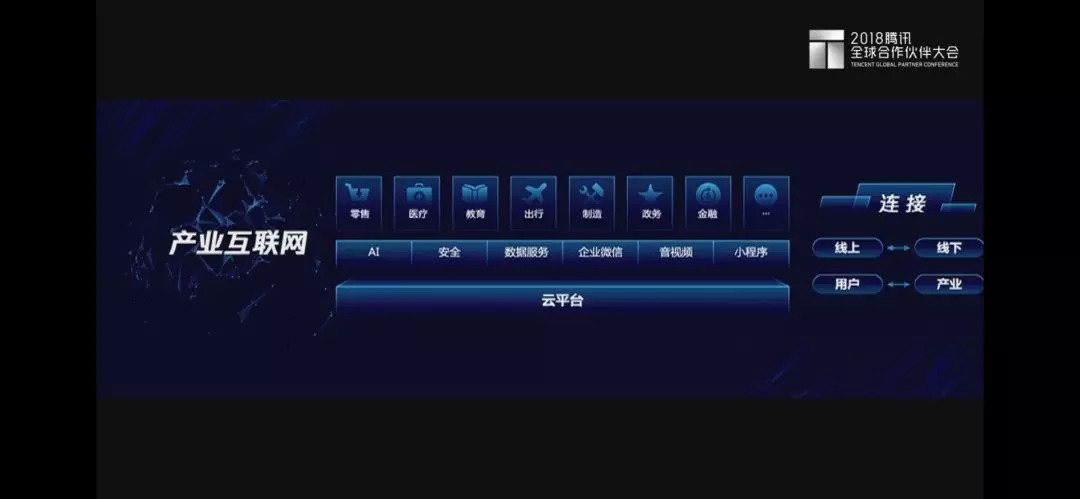 腾讯的河流长什么样?腾讯全球合作伙伴大会的描绘或许就是最形象的,科技的蓝色搭配人文的金色。