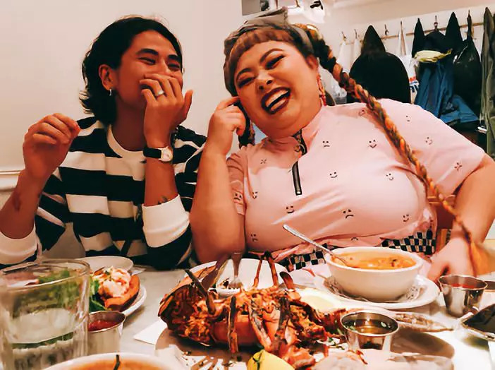 辣目洋子则拿着鸭腿,吃得开心!