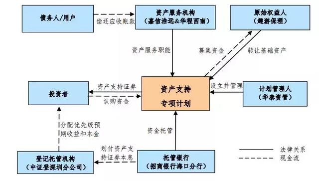 “拿去花ABS”的原始收益人是“天津趣游商业保理有限公司”(以下简称“趣游保理”),资产服务机构为“上海华程西南国际旅行社有限公司”(以下简称“华程西南”)与“北京嘉信浩远信息技术有限公司”(以下简称“嘉信浩远”)。