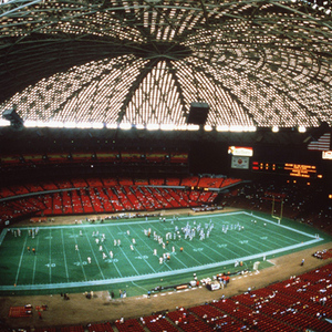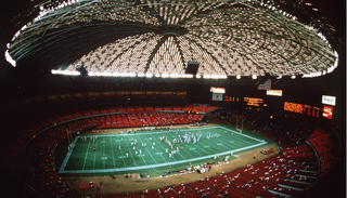 从个人角度来看,像太空巨蛋体育场这样的庞然大物是很难被忽视的。它的剑形支柱约有100英尺高,圆周的灰色混凝土墙壁倾斜着。穹顶则高达200英尺,有机玻璃做成的天窗面板呈几何状排列,看上去就像是昆虫的眼球。