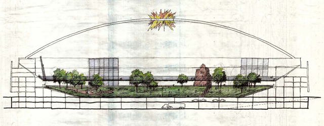 12月,这个小组发布了初步建议。他们提议彻底改建体育场内部,将之变为一个巨大的室内公园。图纸大致展现了未来室内公园的样子,草地,书目,蜿蜒的小道,嘉年华和展览场地。这个公园将是一个有屋顶的、可调节气候的、全年开放的地方,湿度常年保持在80%左右,温度则能上下变化40华氏度,成为城市中的一片绿洲。关键的是,这份报告海提到了如何为这样的一项工程募集资金并持续利用。