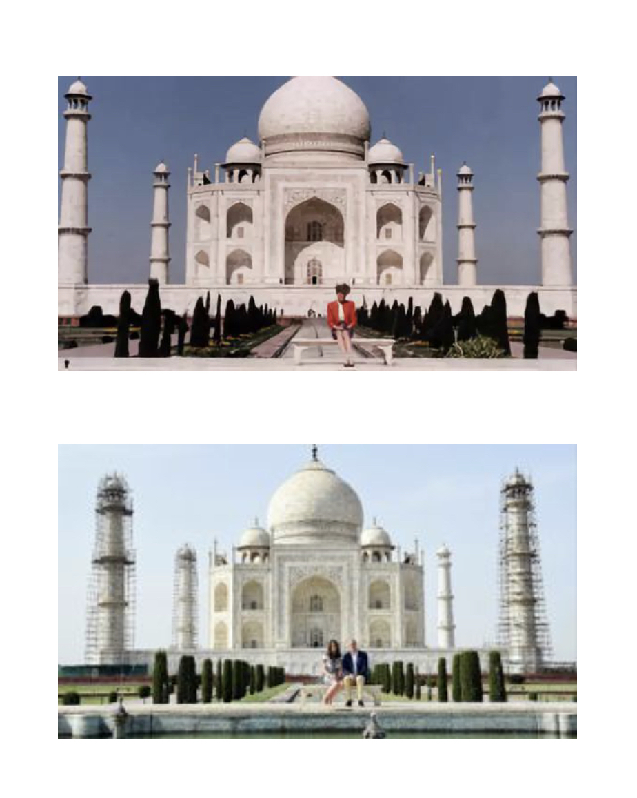 1992年2月,查尔斯亲王和戴安娜王妃一同访问印度,期间戴安娜独自前往泰姬陵参观并留影,符号化的泰姬陵,叠加当时关于二人婚姻关系的坊间传闻,照片被解读为“孤独”、“爱情的坟墓”等等。