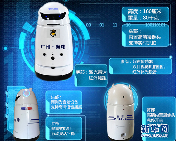 “安安警官”的投入使用,是广州海珠警方坚持警务创新,推进信息化、智慧新警务的一次全新尝试。它是一台集遥控辅助巡逻、移动高清拍摄、高清语音播报等功能于一身的高科技警用机器人。