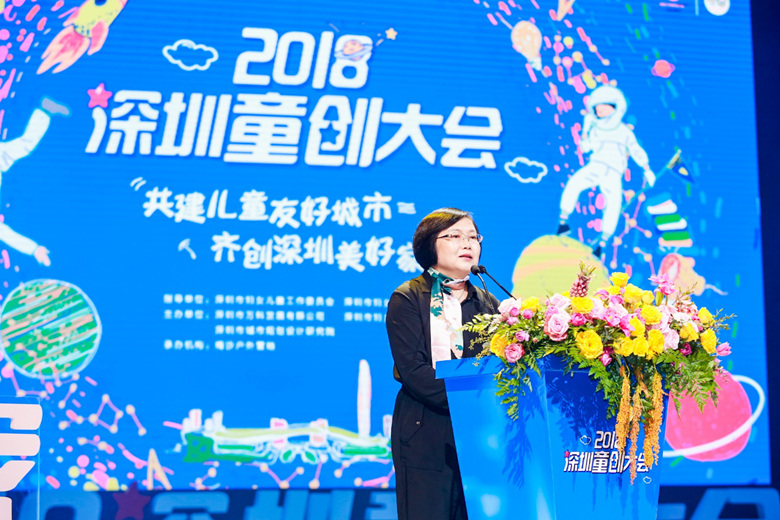 深圳市深圳市妇女联合会主席、深圳市妇女儿童工作委员会副主任马宏为童创大会致开场辞。马宏主席从自己的童年理想说起,表达对深圳儿童的殷切期望:“你们是现在的追梦人,更是未来城市的建设者,只要你心中有梦想,我们行行业业都会支持,城市也将因你们而更美好!”