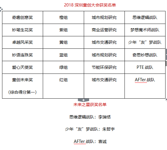 大会最后,与会嘉宾在颁奖仪式为优秀战队进行颁奖,AFTer战队以综合得分第一的佳绩,荣获本届“童创未来奖”,李瑞恬、朱哲宇、袁诚以优秀的表现获评为本届“未来之星”。李瑞恬告诉记者:“能亲身感受、发现城市的不足很难得;能让成人、社会知道我们的想法更难得,我相信再过一两年,看城市的变化,会让人惊喜!”