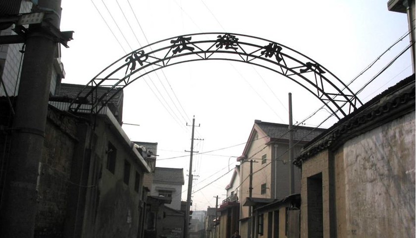 当年,邗江粮机厂里只有四五十名工人,用隶书写就的厂牌横跨一道小巷,如今看来有些破败。
