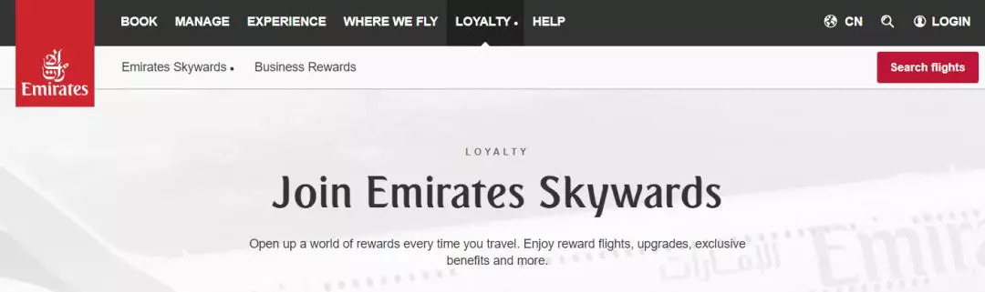 阿联酋航空常旅计划网页
