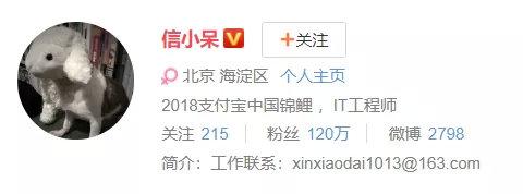 支付宝这条“寻找中国锦鲤“微博创下了6小时内转发破百万、周累计转发破300万的记录。获奖者“信小呆“一举成为网红,以她名字命名的微博话题在一天内阅读量超过2.5亿,和她相关的话题在微博热搜榜前10名中占据了3席,个人微博粉丝从不到一千一天内暴涨50万。在活动过去一月后,#信小呆一周后环游世界#都能轻松上热搜。