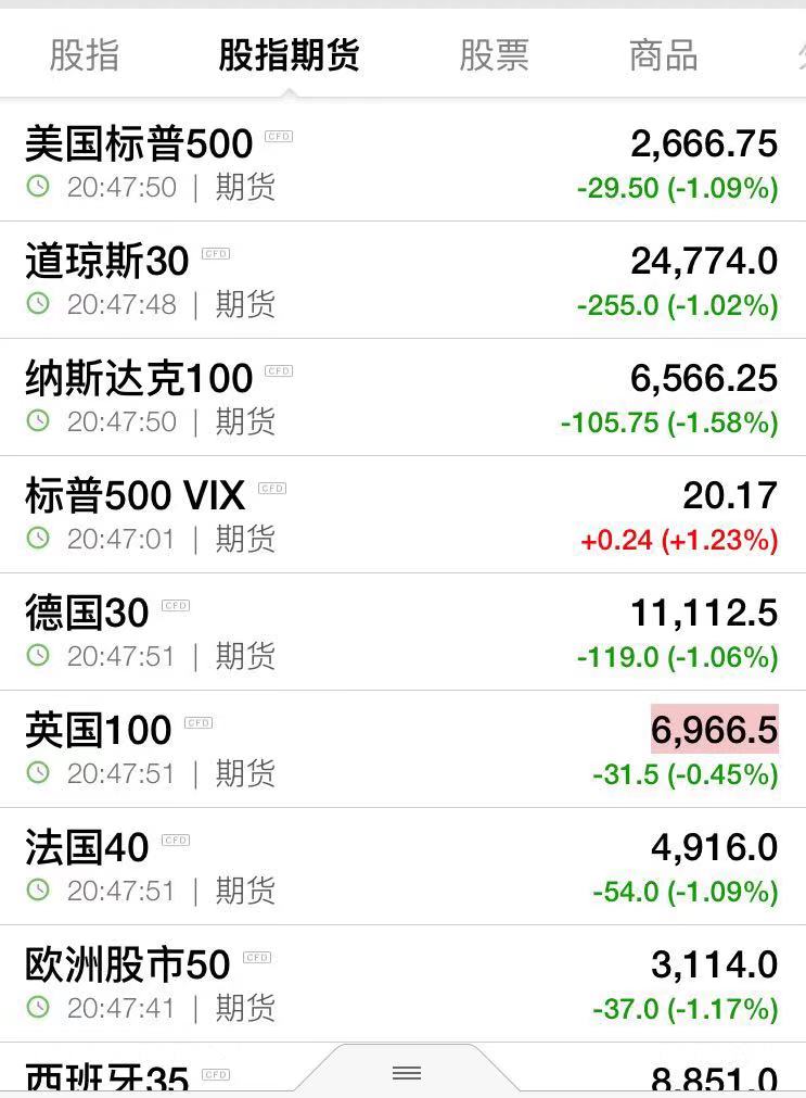 美国三大股指期货跌幅均超过1%。目前标普500期货跌1.09%,道琼斯30指数期货跌1.02%,纳斯达克指数跌1.58%。