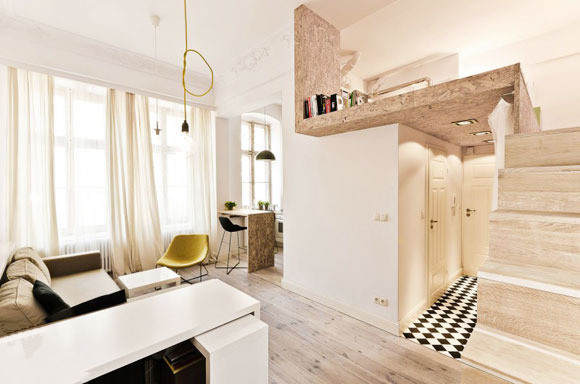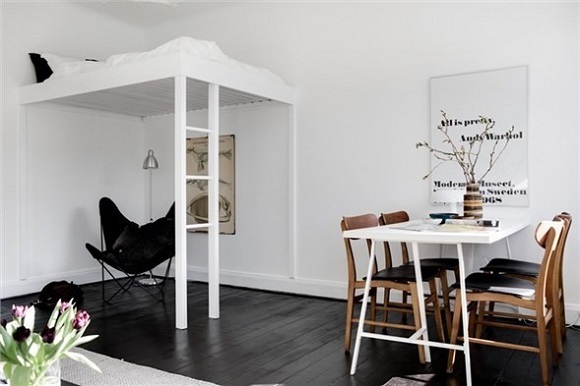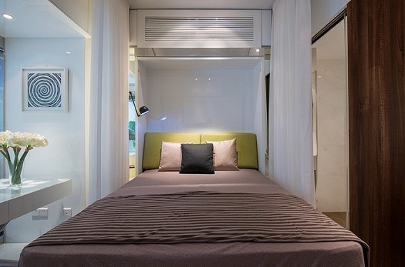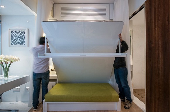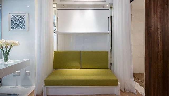 14. 这个设计在小户型装修中很常见,将沙发背后的木板翻转下来就变成了床。