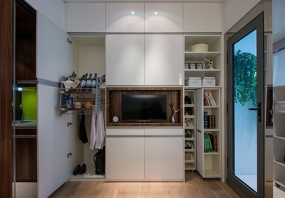 15. 整体柜体设计容纳了生活一切所需,如果有个隐藏货梯就更棒了。
