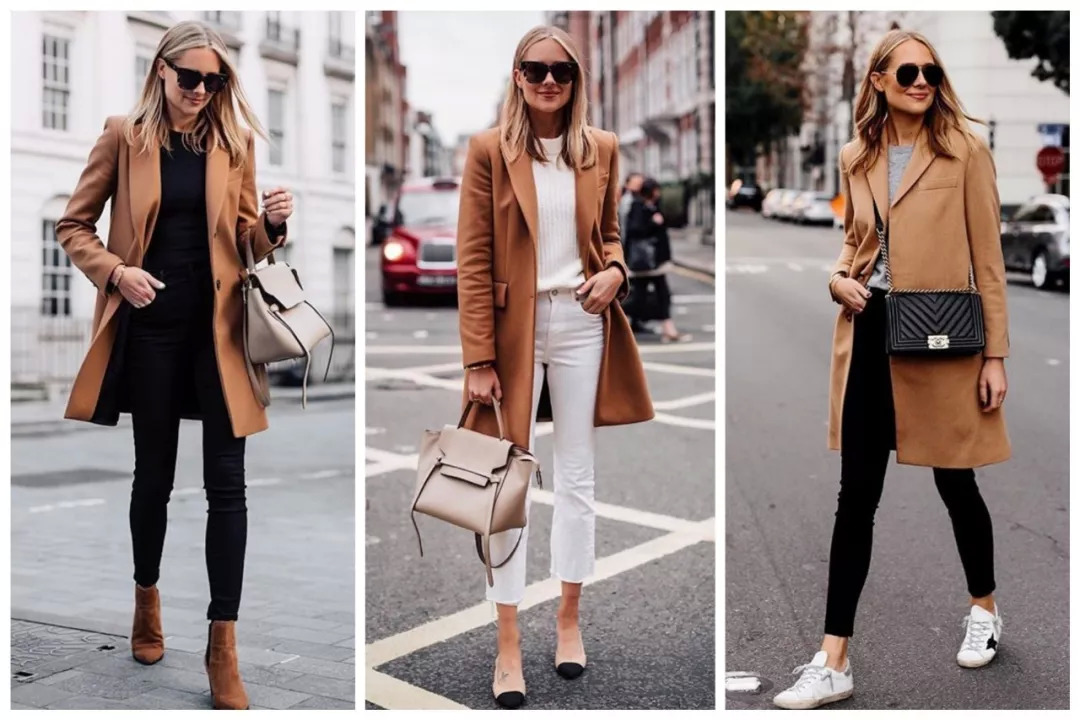 对比一下,同一件驼色大衣,内搭黑色、灰色、白色,是不是明显感觉中间最显年轻,显气色?