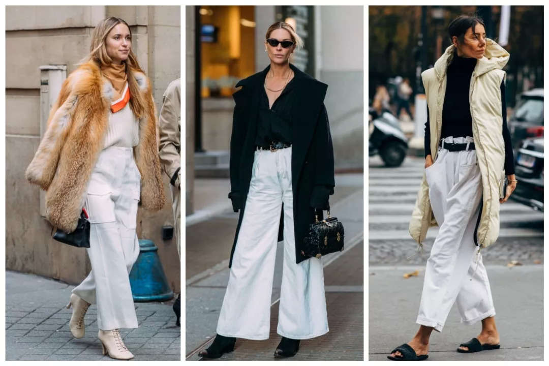 类似的,Pernille Teisbaek的皮草、Erin Wasson的黑色大衣&羽绒夹克,这些冬季容易闷闷的单品,都能搭小白裤。