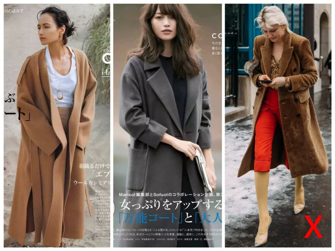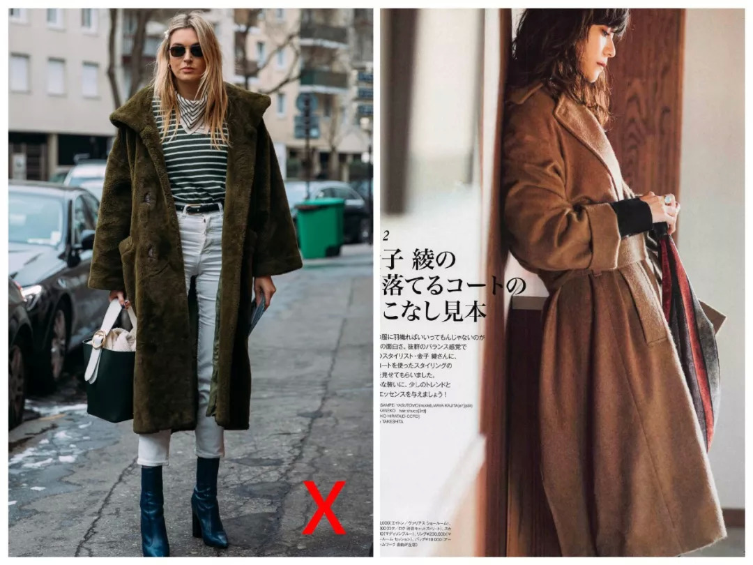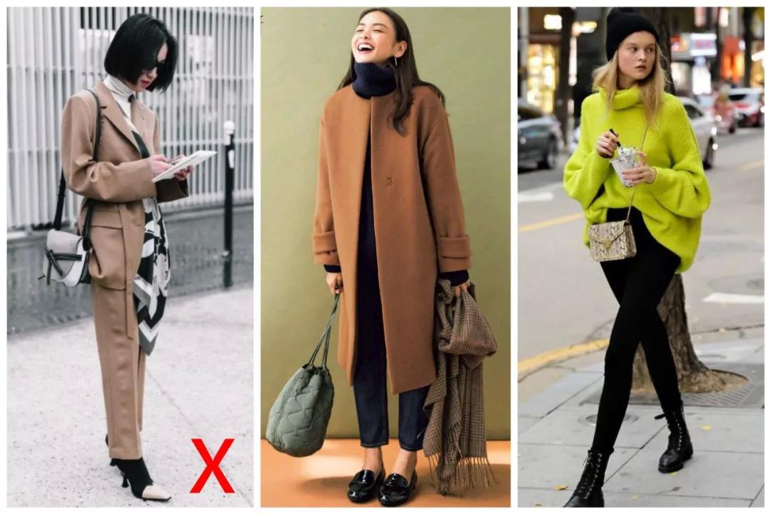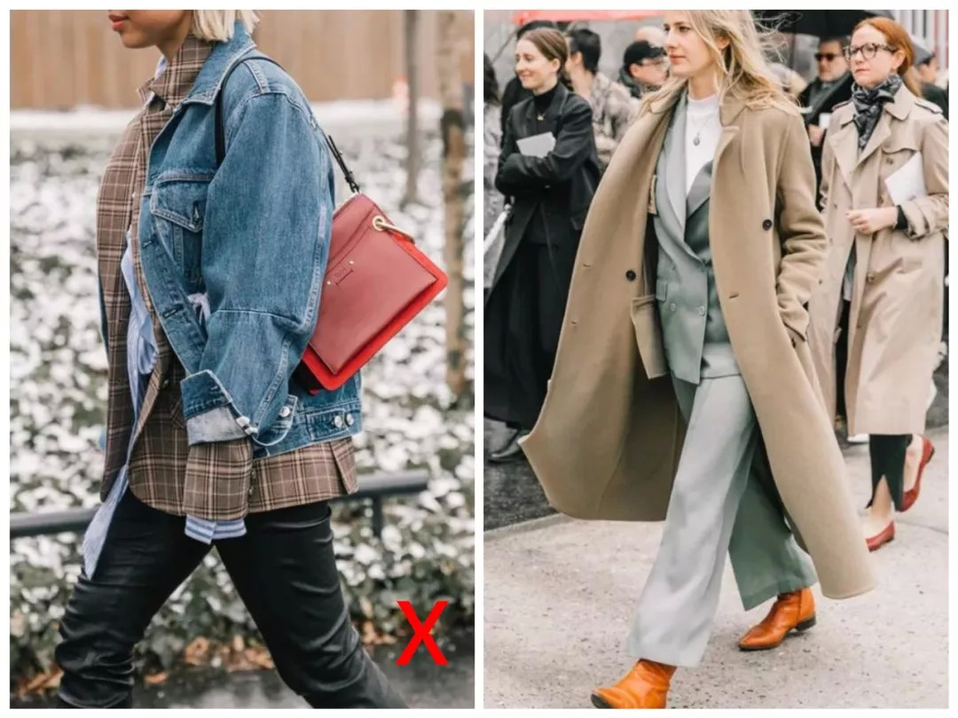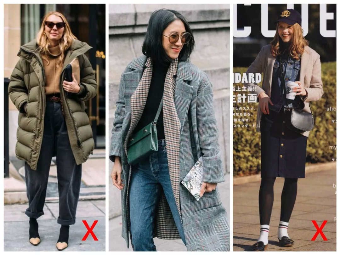 如果要加外套,同样是内紧外松。像这样内松+外松、内松+外紧的组合,不仅不舒服,还臃肿到爆炸啊!